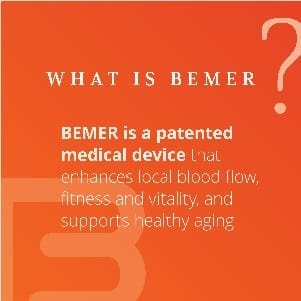 BEMER stands for Bio-Electro-Magnetic-Energy-Regulation. BEMER is an FDA Class II cleared consumer medical device that, during an 8-minute session, sends a low-intensity pulsed electromagnetic field to the body in order to safely stimulate healthy muscles which temporarily enhances local blood flow, resulting in better disbursement of oxygen within the target tissues while supporting the elimination of CO2. Additional benefits from regular use of BEMER may include reduced stress, improved relaxation, optimized physical performance, enhanced muscle conditioning and physical fitness, and a better overall feeling of wellbeing.